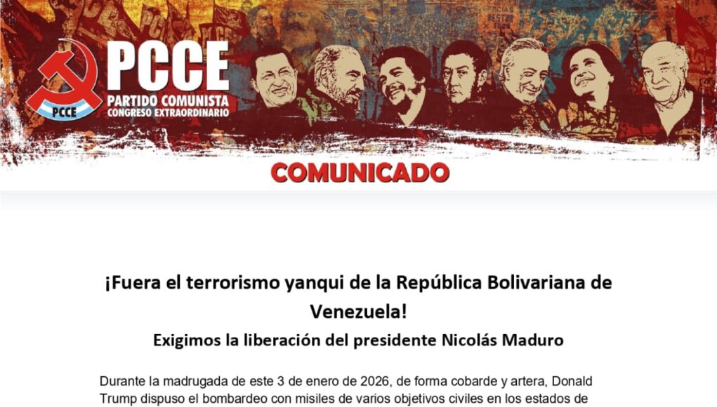 Durante la madrugada de este 3 de enero de 2026, de forma cobarde y artera, Donald Trump dispuso el bombardeo con misiles de varios objetivos civiles en los estados de Caracas, Miranda, Aragua y La Guaira. Tras 28 semanas de asedio militar, iniciaron la acción criminal contra el pueblo venezolano y la Revolución Bolivariana, incluyendo el anuncio de la captura del presidente constitucional Nicolás Maduro y de su compañera Cilia Flores. Se trata de un hecho de enorme gravedad para la paz y la soberanía de nuestra América Latina.